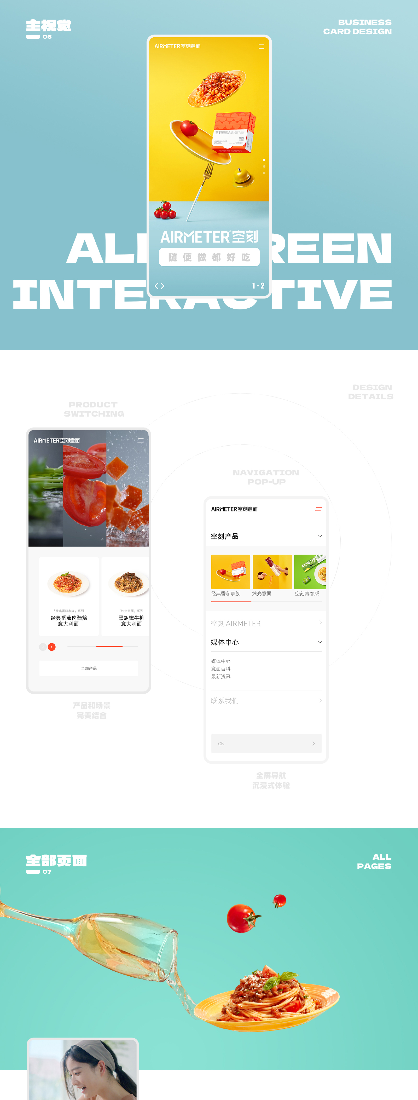 全屏切换交互,情景化产品设计,卡片式呈现。