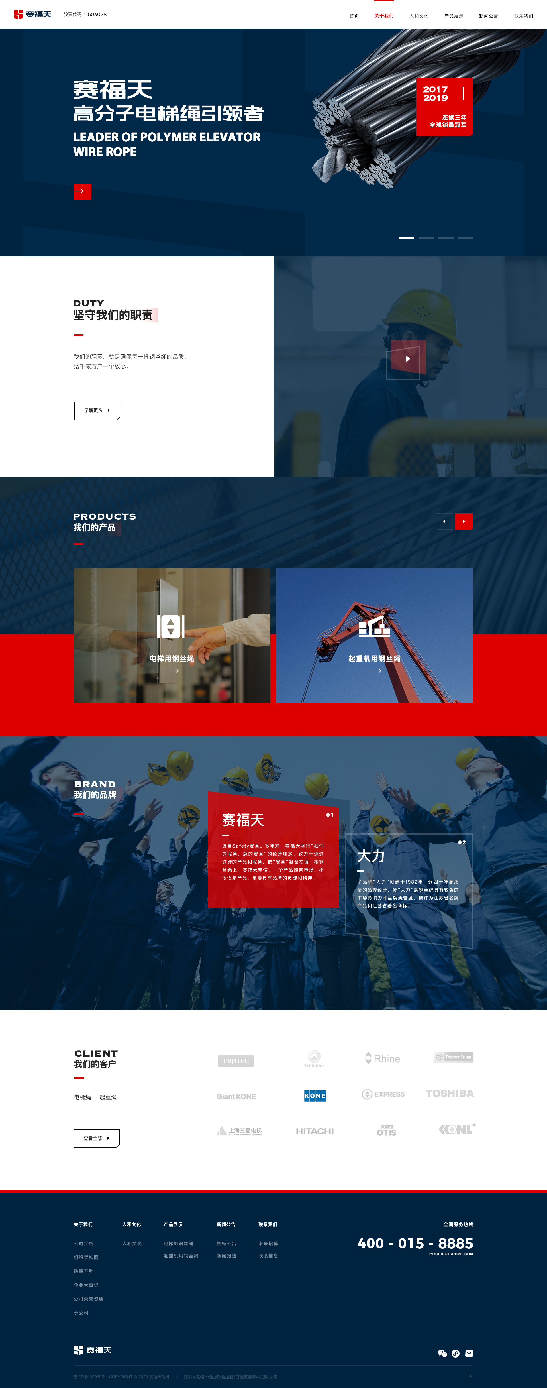 赛福天坚持“我们的服务,您的安全”的经营理念致力于通过过硬的产品和服务,把“安全”凝聚在每一根钢丝绳上赛福天坚信一个产品推向市场,不仅仅是产品,更要具有品牌的灵魂和精神。